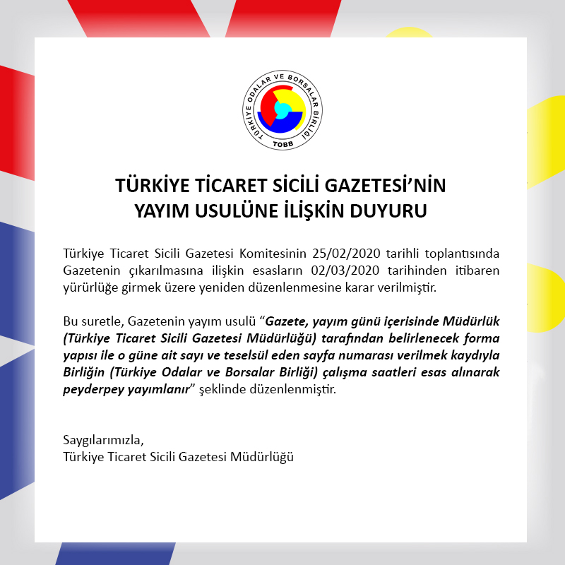 TÜRKİYE TİCARET SİCİLİ GAZETESİ'NİN YAYIM USULÜNE İLİŞKİN DUYURU